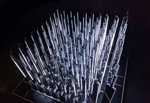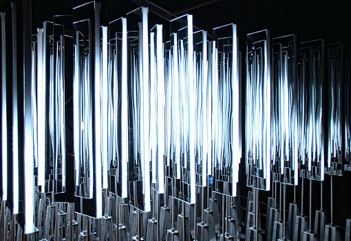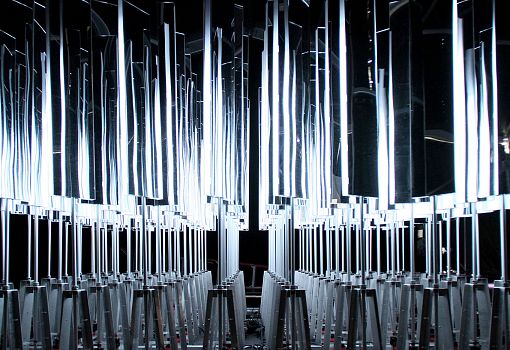 В рамках нью-йоркского музыкального фестиваля Panorama дизайнеры бюро SOFTlab создали интерактивную инсталляцию Volume. Она состоит из 100 вертикально установленных подсвеченных светодиодами зеркальных панелей, каждая из которых способна вращаться независимо от других. Эти панели, оборудованные семью камерами слежения, реагируют на появление и перемещение посетителей – разворачиваются по направлению к зрителю, повторяя траекторию его движения. В основе концепции дизайнерского произведения лежит мысль о том, что все в мире взаимосвязано, и ни одно наше движение не остается без реакции со стороны элементов среды.
