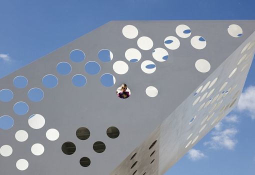 Функциональная скульптура появилась на берегу одной гавани в Орхусе (Дания). Инсталляция Sailing Tower похожа на оригами из перфорированной стали. С функциональной точки зрения она «работает» как обзорная платформа высотой в 7,5 метров. Интегрированная подсветка монохромной конструкции в темное время суток преображает отверстия, делая их похожими на иллюминаторы транспортных судов. Реализовали проект архитекторы Dorte Mandrup Arkitekter.