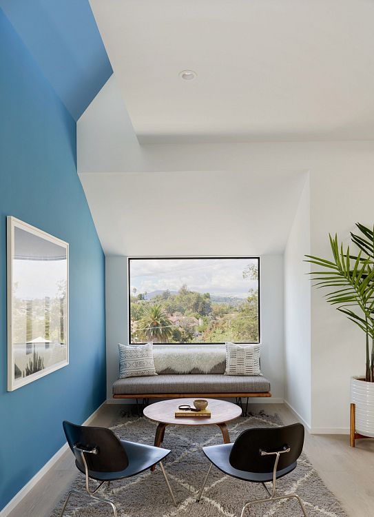 Но, пожалуй, самым удивительным можно назвать такой факт: по замыслу архитекторов, в любую интерьерную зону можно попасть снаружи благодаря обустроенному пространству вокруг здания. Дом состоит из трех объемных элементов белого цвета, словно бы сползающих с холма. В каждом из объемов можно обнаружить сквозные проёмы различной формы, которые обеспечивают проникновение в интерьер естественного света, а также отличные панорамные виды. «В этом проекте соединились сложные инженерные решения, связанные с местоположением дома, и нетривиальная объемно-пространственная модель: здание как будто разрезано в нужных местах и сложено по сгибу подобно бумажной головоломке», - говорят архитекторы.