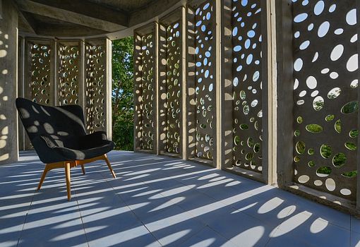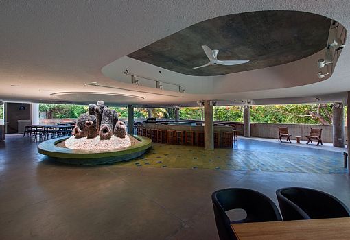 Проект гостиницы в Пуэрто-Рико был выполнен местной фирмой Fuster+Architects. Отличительная особенность дизайна – изогнутый фасад, экранированный стеклобетонными перфорированными панелями. Сквозные отверстия в них повторяют пористую структуру коралла. Благодаря перфорации внутрь здание проникает свежий воздух и солнечный свет.