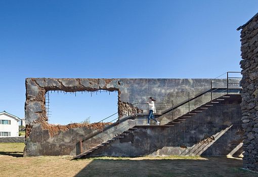 Целый комплекс оригинальных решений воплотили в жизнь архитекторы platform_a в своем новом проекте. На вулканическом острове Чеджудо (Корея) находится частный дом platform_monsant. Авторам удалось решить непростую задачу, обеспечив неприкосновенность частной жизни и максимальную открытость жилых пространств. Так, один фасад практически полностью остеклён, на крыше есть терраса. Бетонная стена и каменная кладка со встроенными источниками света ограждают частные пространства, а поворотные элементы фасада позволяют создать динамичные социальные зоны.