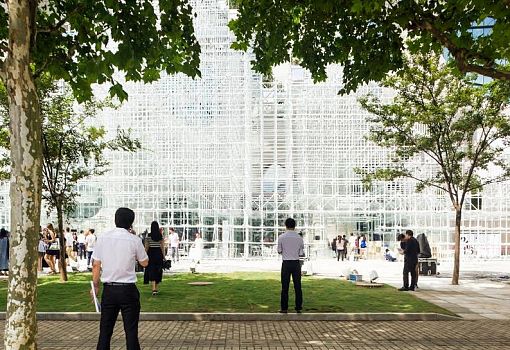 Памятуя о своем павильоне Serpentine, снискавшем международное признание еще в 2013 году, японский архитектор Соу Фудзимото создал аналогичную конструкцию в шанхайском Гималаи-центре. Концепция павильона Envision родилась из представления об архитектурном будущем человечества. Соу Фудзимото предлагает использование структуры строительных лесов, которая выступает в качестве «каркаса», а не вторичного материала для строительства. Общая площадь павильона составляет 670 квадратных метров, что позволяет создать открытое сообщение между его внутренними пространствами. В целом конструкция создает ощущение прозрачности и даже невесомости, а площадь под ним служит пространством для торговли, переговоров и проведения мероприятий.Тонкая структура павильона Envision заметно контрастирует с Гималаи-центром. Посетителям предлагается подняться наверх и блуждать по извилистым пространствам «строительных лесов», чтобы насладиться видами Шанхая с большой высоты.