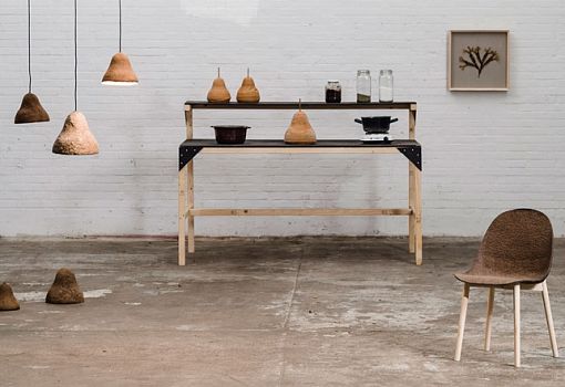 Бурые водоросли вызывают не самые приятные ассоциации у большинства людей. Растительность заполоняет прибрежные воды, источает неприятный запах, а высыхая на берегу, превращаются в твердые корки. Однако именно эта особенность бурых водорослей натолкнула датских дизайнеров Йонаса Эдварда и Николая Стинфатта на идею создания мебели из природного материала. Собрав побеги, высушив и измельчив их в порошок, выпускники Датской королевской академии изящных искусств приготовили из водных растений вязкую клейкую массу. Дело в том, что водоросли содержат естественный природный полимер – альгинат. Он очень прочный и экологичный. Сочетая получившийся продукт с бумагой в разных пропорциях, дизайнеры создали прочный и легкий материал, напоминающий пробку. Из него изготавливают чудесные лампы и стулья Terroir. Цвет изделий зависит от типа водорослей и варьируется от темно-коричневого до светло-зеленого. Мебель из водорослей можно разломать и повторно переработать, а можно использовать как отличное удобрение, богатое азотом, йодом, магнием и кальцием. Кроме того, в них содержится большое количество соли, что обеспечивает их огнеупорность.