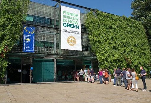 Здание посольства Финляндии, расположенное в Вашингтоне (США), получило платиновый сертификат LEED. Оно было построено в далеком 1994 году по проекту архитекторов Микко Хайккинена и Маркку Комонена. С тех пор было проведено несколько реконструкций, в результате которых «начинка» постройки полностью поменялась. А началось все с замены обычных ламп накаливания на энергосберегающие…