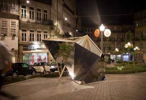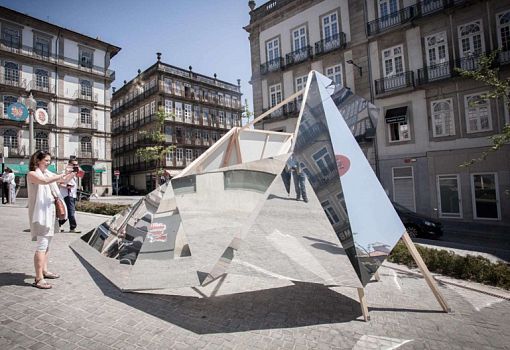 Нетривиальная интерпретация детской игрушки – калейдоскопа появилась в Порту (Португалия). Фасеточная скульптура с зеркальными поверхностями была сконструирована архитекторами FAHR 021.3. С помощью объекта Fragments дизайнеры попытались визуально углубить и расширить городские пространства, позволив взглянуть на них под необычным углом.