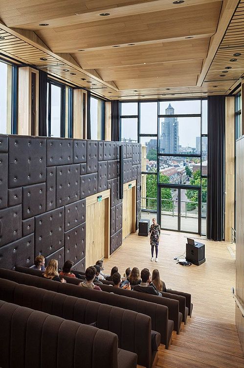 Композиционным центром стала большая система хранения, напоминающая книжный шкаф. Окружающие же пространства играют роль читального зала, художественной студии и музыкальных классов, выставочных пространств, кафетерия и магазина.