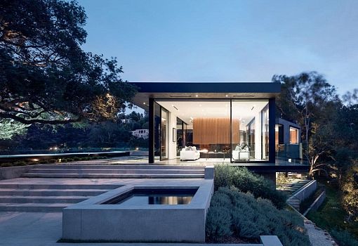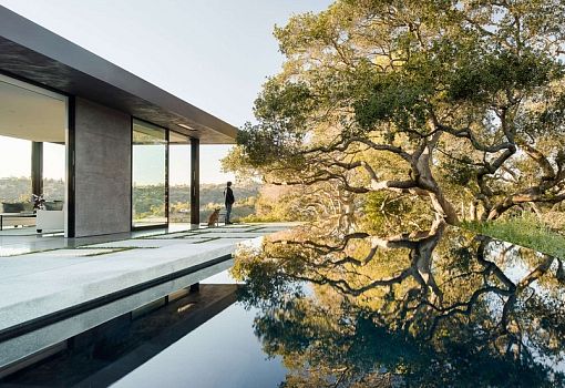 Дом площадью 2500 кв.м. построили архитекторы Walker Workshop в Лос-Анджелесе (США). Несмотря на солидную площадь, сооружение не акцентирует на себе внимание благодаря умелой интеграции в окружающий ландшафт и обилию зелени. Oak Pass Main House оборудован несколькими озелененными террасами и окружен раскидистыми дубами. Минималистский объем буквально разделен на две части 23-метровым бассейном.