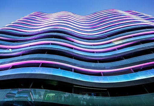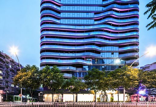 Радужный фасад и ритмическая иллюминация «Шуси» делает его ярким акцентом всего района, и вносит разнообразие в большое количество однотипных квартир, балконов и наружных пространств, формируясь вокруг здания и создавая ощущение неповторимости.