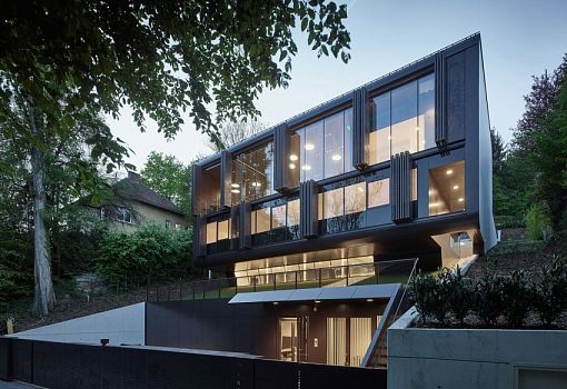 В предместьях Линца (Австрия) можно найти дом от архитекторов Archinauten. Построенный в минувшем году, House GT стал фактически частью склона холма, в который и интегрировано сооружение. Одной из самых любопытных частей дома является прямоугольный объем, который отличается большой площадью остекления, но может динамично меняться благодаря подвижным перфорированным экранам. В числе решений архитекторов, которые обеспечивают связь с окружением - открытые террасы и панорамное остекление.