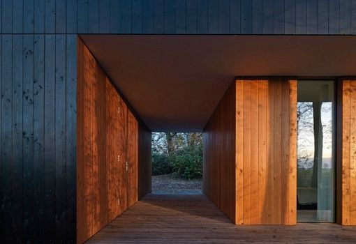 Дом Makkinga House стал отличным дополнением природных ландшафтов, хотя и акцентирует на себе чересчур много внимания. Минималистская композиция воплощена архитекторами DP6 Architectuurstudio в дереве с контрастирующими объёмами чёрного и природного древесного цвета. Отличается дом площадью 120 кв.м. множеством террас и большой площадью остекления. Так обеспечиваются попадание естественного сета и панорамный обзор. Расположено сооружение во Фрисланде – лесистой области на севере Нидерландов. Энергосбережение обеспечивается за счет качественного утепления, тройных стеклопакетов и продуманной ориентации здания в пространстве.