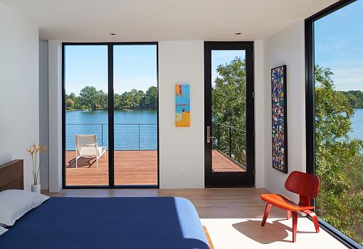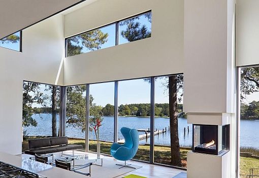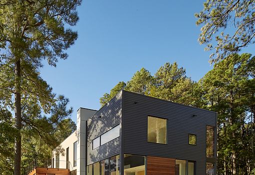 На дизайн дома, созданного по проекту американского архитектора Роберта М. Гёрни (Robert M. Gurney), большое влияние оказали экологические нормы, требования зонирования и ограничительные строительные нормы и правила. Новое строение возведено на месте старого дома в голландском колониальном стиле, располагавшегося на берегу залива Солитьюд-Крик (Solitude Creek) в Мэрилэнде (США). Дом был построен в 1989 году и находился под угрозой затопления. Старое здание было в плачевном состоянии, в его дизайне не были использованы преимущества местности, и это не давало владельцам возможности любоваться великолепными морскими видами. Для нового объекта было решено снести существующую структуру, увеличить высоту фундамента и возвести объём, отвечающий всем современным требованиям. Потрясающие виды на море, сосновые леса и болота; морской воздух, заполняющий помещения; сочетание разных по форме окон обеспечивают пространство дома необыкновенной атмосферой света и свежести, которая как нельзя лучше подходит для владельца, художника-абстракциониста.