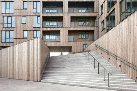 В Ставангере (Норвегия) на берегу фьорда достраивают жилой комплекс из нескольких многоквартирных домов общей площадью около 20 тыс. кв.м. Авторы проекта – бюро AART architects и Studio Ludo Status. Архитекторов на создание комплекса вдохновили жилые деревянные дома XIXвека, которые достаточно распространены в Норвегии. Невысокие объемы хорошо вписываются в ландшафт и повторяют очертания ломаной береговой линии. Сдача в эксплуатацию всех объектов запланирована на 2015 год.