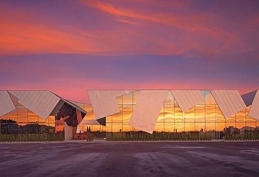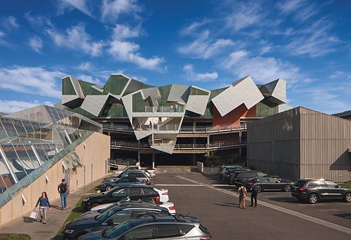 В этом году архитекторы Eric Owen Moss Architects закончили неординарный проект под названием «Птеродактиль». С целью его воплощения кровля многоярусной парковки стала 9-ю объединенными в единую композицию прямоугольными объемами общей площадью в 5079 кв.м. Для оформления фасадов использован технологичный, но довольно невзрачный материал Rheinzink prePATINA сине-серого цвета. По словам архитекторов, недостаток красок с лихвой компенсирует интересная форма.