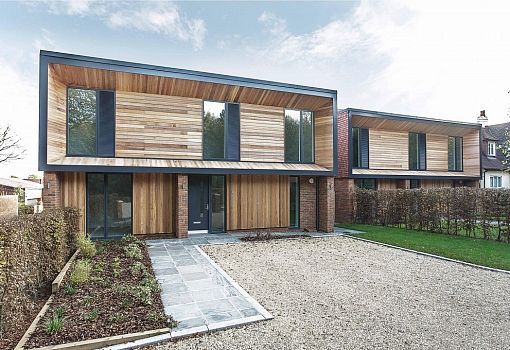 Сочетание открытых и закрытых пространств стало основой контрастного дизайна домов 7-9 HARESTOCK ROAD от архитекторов Re-Format LLP. Расположенные в Великобритании жилища характеризуются деревянными фасадами, выполненными из природных материалов, и внутренним двором с кирпичным ограждением. Минималистская композиция включает 7 зданий.