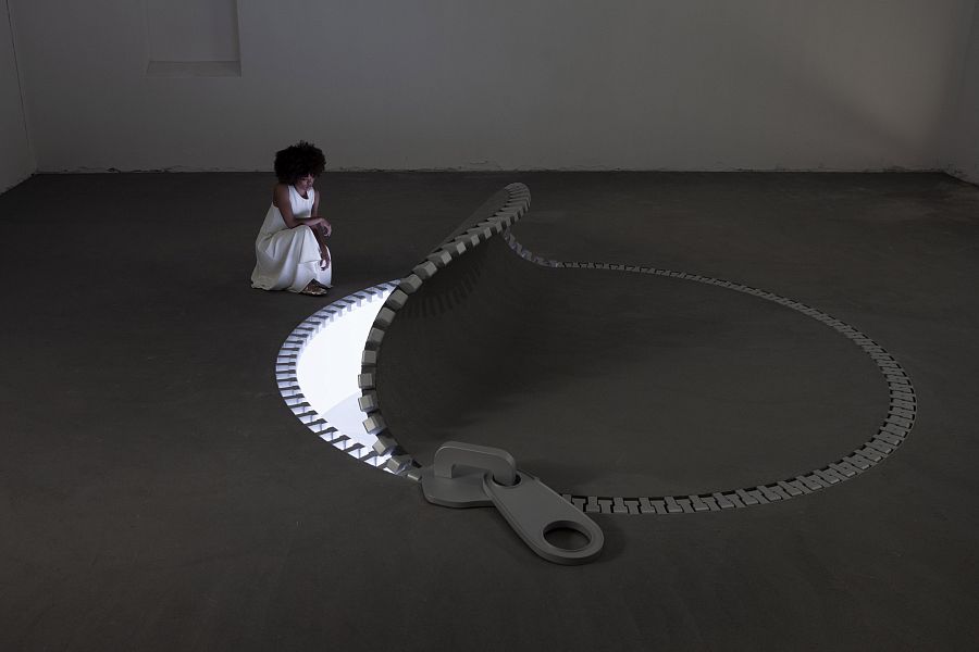 «Благодаря застежкам нам удалось «раскрыть» псевдоисторическую миланскую постройку с фасадом шириной 17 м, - рассказывает художник. – Таким образом мы надеемся пробудить фантазию зрителей, которые будут представлять себе, что именно скрывается за стенами и полами дома». Внутри есть дополнительные «карманы», к примеру, полукруглое отверстие в бетонном полу, из которого льется мощный свет. Похожий проем сделан в одной из внутренних стен: в этой части инсталляции Чиннек также использовал яркий свет для демонстрации архитектурных особенностей интерьера. По мнению автора, его произведение помогает оценить позитивный потенциал пространства и, возможно, способствует пробуждению интереса к дизайну и архитектуре у детей.