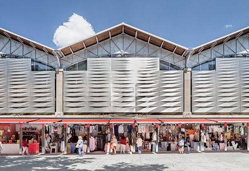 Недавно студия Мateo arquitectura завершила реконструкцию известного открытого рынка в Барселоне Эль-Нинот, который является важным узлом городской инфраструктуры. В самом начале проектирования было решено сохранить характерную металлическую структуру здания рынка, максимально использовать естественную вентиляцию и освещение. В результате появились динамичные фасады и навес, которые превосходно пропускают естественный свет, но ограничивают потенциально вредное солнечное излучение. Это достигается с помощью системы перфорированных ламелей, регулирующих проникновение света. Кроме того, в боковые фасады встроены открытые киоски. В соответствии с требованиями наших дней у рынка появились два подземных этажа с автостоянкой, супермаркетом, погрузочными площадками и складами.