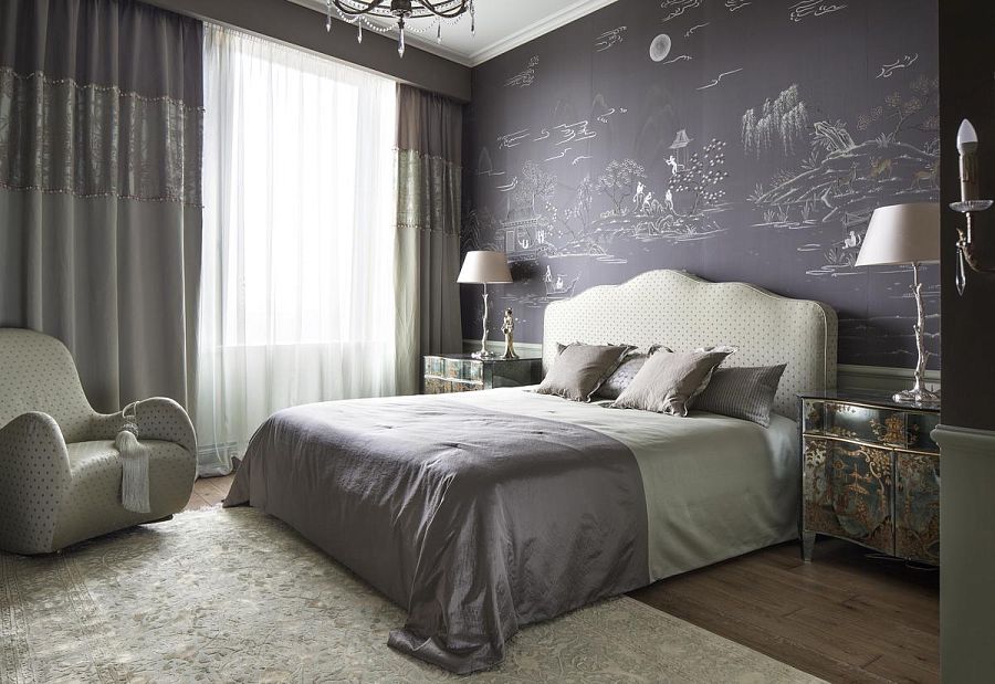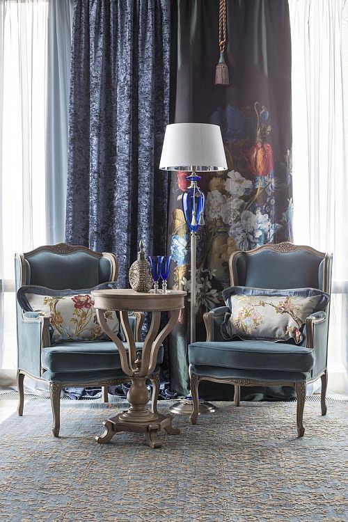 История этого интерьера началась неожиданно. Получив заказ на большую квартиру в Москве, я бродила по Риге в поисках вдохновения. И вдруг неожиданно в витрине тканевого салона увидела изумительной красоты шелковую шпалеру, где на винно-черном фоне был выткан натюрморт фламандского художника XVIII века Жан-Франсуа ван Дейла «Ваза со сломанной туберозой». Шпалера была изготовлена на известной французской фабрике и стоила немереных денег. На этой фабрике до сих пор не утрачены секреты изготовления подобных тканей, и даже сохранились старинные ткацкие станки в рабочем состоянии. Естественно, я прошла мимо, ведь в мою задачу не входило разорение заказчика.