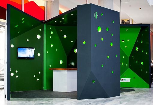 В виде осколка скалы архитекторы OOIIO представили свой проект I-rock. Это ограниченный многофункциональный объем, сконструированный из самых доступных материалов (пластик и поликарбонат) и способный трансформироваться. Скульптурная форма может быть разомкнута для создания социальной зоны, либо закрыта для формирования приватного пространства. Цветовая палитра, как и форма, продиктована особенностями ландшафта и островной природы места (Испания).