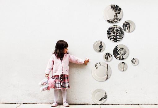 Желающие использовать тарелки по прямому назначению могут смело это делать - скелет-супермодель нормально воспримет даже мытье в посудомоечной машине.