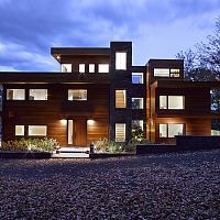 В архитектурной композиции дома от Foz Design, расположенного на берегу Гудзона (США), чувствуется привкус романтики и сдержанной роскоши. Деревянный дом имеет прямоугольную форму с выступами маленьких консолей. Площадь модернистского сооружения – 2 066 кв. м; здание отличается высокими потолками 6,1 метра. В интерьере преобладают натуральные материалы - дерево и камень.