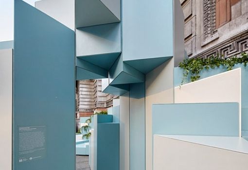 Неожиданная композиция этим летом возникла прямо перед входом в Лондонскую королевскую академию искусств. Она создана студией SO? Architecture and Ideas и предлагает переосмыслить традиционное использование керамической плитки в архитектуре. Обычно керамика используется как декоративный элемент, причем это 2D-материал. Но в этой инсталляции она образует 3D-композицию, предназначенную для отдыха, исследования и общения. Керамический холм, выполненный из белых и голубых треугольных призм различной длины, позволяет посетителям экспериментировать с керамикой, карабкаться по «горе», а также любоваться на зеленые насаждения, растущие в некоторых призмах.