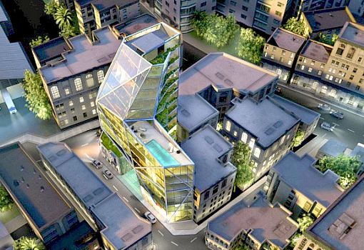 Историческое здание 20-х годов прошлого века в Бейруте станет основой для архитектурной «прививки», придуманной архитекторами SOMA Architects. Исторический ортогональный объем будет включен в композицию новой постройки. Это 11-этажная фасеточная башня на металлическом каркасе будет целиком остеклена. В ней запроектированы 13 апартаментов класса «люкс».