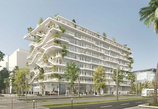 Недавно проведенный конкурс на проектирование бизнес-центра в Ницце выиграло агентство NL*A Paris. Проект-победитель представляет открытые пространства, объединенные в многоэтажную структуру с многочисленными террасами. Будущее сооружение площадью 6400 кв.м. фактически лишено внешних стен, зато буквально утопает в зелени и солнечном свете. Для эффективного взаимодействия с окружающей средой и регулирования климата фасады несколько отличаются друг от друга, например, южный имеет более узкие террасы, чтобы интерьер не перегревался.