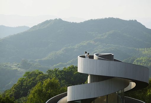 По проекту архитектора Хироши Накамуры на территории одного из курортов Японии построена небольшая свадебная часовня. Выполнена она в виде двойной спирали, образованной из двух лестниц, символизирующих жизненные пути влюбленных, начинающиеся порознь и затем соединяющиеся. Строение поднято над деревьями, и со смотровой площадки открывается удивительный вид на море. Стеклянная крыша и окна между лестницами объединяют внутреннее пространство с окружающей средой и минимизируют зависимость от искусственного освещения.