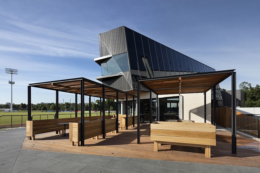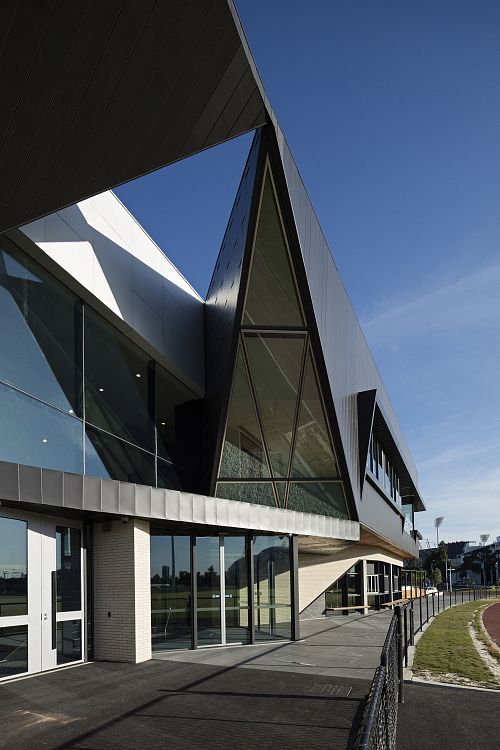 Четыре года назад архитектурной компании Croxon Ramsay было поручено спроектировать здание, которое бы способствовало повышению привлекательности района, удовлетворяло потребности многочисленных заинтересованных сторон и располагалось рядом с историческим Glasshouse, выполняя роль объединяющего центра для любителей спорта. Здание расположено рядом с олимпийским бассейном на вытянутой в длину треугольной площадке. В его «хвостовой» части есть бар и кафе, через которые можно пройти внутрь, но главный вход находится со стороны пешеходной дорожки. Стеклянные двери ведут к лестнице. В цокольном этаже имеется лекционный и спортивный залы, а также складские помещения. На первом этаже расположены общественные зоны, а на втором - зал заседаний и небольшой конференц-зал. Конструкция нового Glasshouse индивидуальна, она органично дополняет окружающие здания. Фасад выполнен из кирпича на нижних уровнях, стекло сочетается с цинковыми и алюминиевыми элементами.