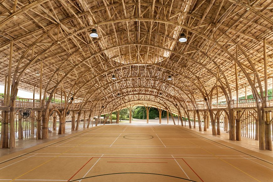 Использование натурального бамбука стало одним из дизайнерских трендов в странах, где этот материал является общедоступным. Архитекторы бюро Chiangmai Life Architects, например, спроектировали школьный спортивный комплекс из бамбука на 300 человек в горной части Таиланда.