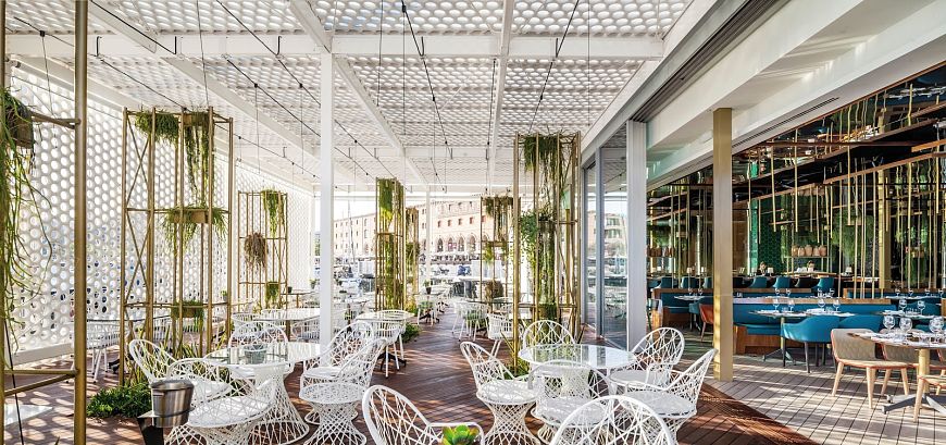 Бюро El Equipo Creativo из Испании создало атмосферу Средиземноморья в интерьере одного барселонского ресторана. Основной прием для достижения этого – погружение клиентов в уникальный пейзаж порта Велл.