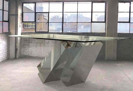 Стол Monolith с «падающим» основанием – отсылка к черным монолитам «Часового» Артура Кларка и «Космической одиссеи» Стенли Кубрика. Столешница – закаленное стекло, подстолье – сталь. Производится ограниченной серией в 25 экземпляров, стальное основание может быть черным, белым или зеркально-отполированным.