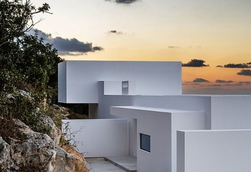 Минималистская концепция, предполагающая сочетание белоснежных прямоугольных объемов, положена в основу проекта House T бюро Olivier Dwek Architectures. По словам архитекторов, дом выглядит очень театрально, причем во многом благодаря ориентации на красивый вид морского побережья. Находится сооружение в Греции.