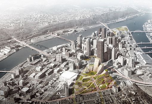 Архитектурная студия Bjarke Ingels Group (BIG) выбрана лидером дизайнерского консорциума по реконструкции одного из центральных районов Питтсбурга – Лоуэр-хилл. Совместно со студиями West 8 и Atelier Ten архитекторы ВIG представили план обновления городского квартала площадью 11,33 га. После завершения работ здесь появятся 1200 новых квартир, около 100 000 кв. метров будет занято торговыми площадями. Архитекторы учли уникальную топографию Питсбурга и спроектировали яркое открытое пространство для жителей города. Планируется, что весь район будет превращен в многофункциональный современный общественный центр с обилием парков и скверов. Он будет соединен с существующей инфраструктурой города площадями и дорогами. Террасы и покатые крыши на уникальном крутом склоне Питтсбурга порадуют горожан невероятными видами.