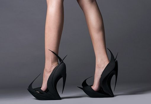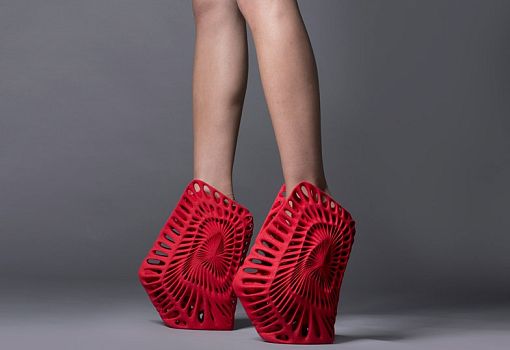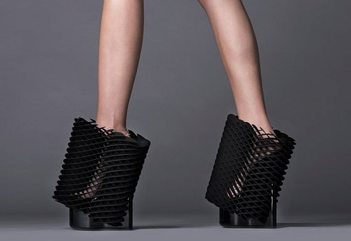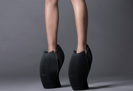 Пять известных архитекторов и дизайнеров – Заха Хадид, Бен ван Беркель, Фернандо Ромеро, Росс Лавгроув и Майкл Янг – создали модели «архитектурной» обуви исключительно с помощью 3D-печати. Для производства одной пары с помощью принтера требуется около 24 часов. Каждая модель была создана с использованием двух различных материалов: подошвы напечатаны из жесткого нейлона, а верх сформирован из более мягкого и гибкого термопластичного полиуретана (ТПУ). 3D-печатная обувь не похожа на обычные туфли и ботинки, тем не менее, по словам их создателей, в них очень удобно ходить. Туфли-шипы на высоких каблуках от Захи Хадид, «копыта» Ван Беркеля, тонкие резные сандалии от Лавгроува, «решетчатые блоки» Майкла Янга и «морские раковины» Фернандо Ромеро были представлены широкой публике в Милане.