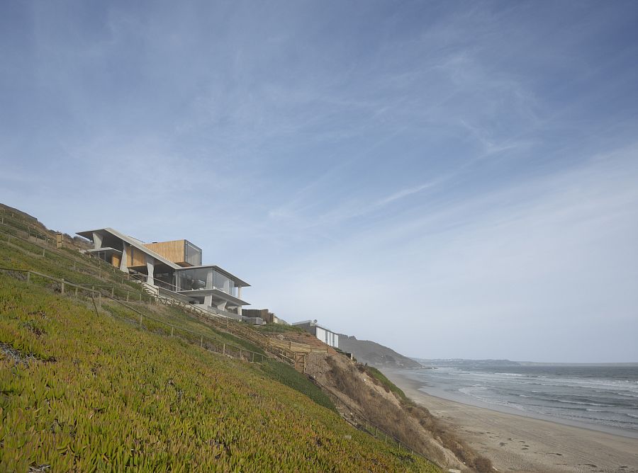 Чилийский архитектор Макс Нуньес спроектировал дом общей площадью 390 кв.м, построенный на прибрежном склоне холма под углом 25 градусов. Это еще один удачный пример того, как архитектура следует за ландшафтом.