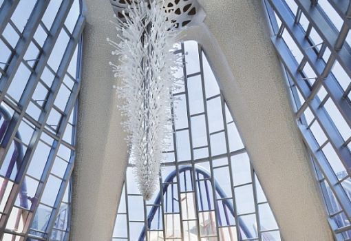 В мире появился еще один образец символической архитектуры: хрупкую красоту и изящество цветка лотоса решили увековечить архитекторы и дизайнеры бюро Studio505 в своем Lotus Building. Сооружение расположено на водной глади искусственного озера в Вудзине (КНР). Фасад «лотоса» оборудован светодиодной подсветкой, сценарии которой меняются каждые 20 секунд.
