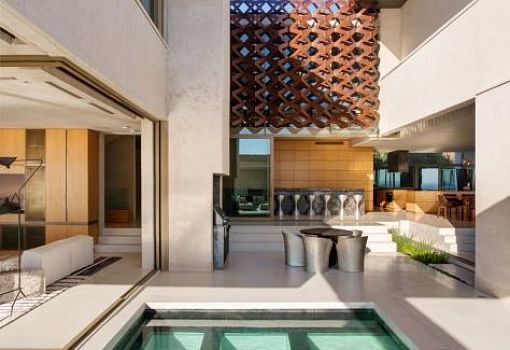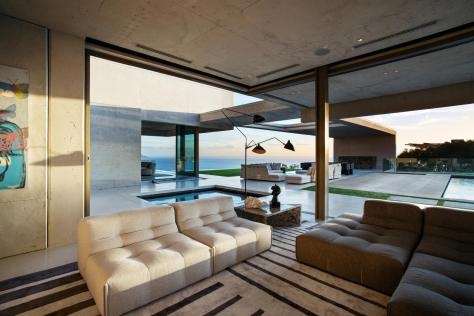Новый проект бюро SAOTA – вилла OVD 919 – в минувшем году был реализован в Кейптауне (ЮАР). Дом находится на возвышенности, и одним из требования к проектной группе стал панорамный обзор. На участке в 2879 кв. м появилось двухэтажное жилище (979 кв. м) из рифленого бетона, кортеновской стали и естественных материалов (дуб, медь). Самым сложным для архитекторов оказалось сохранение неприкосновенности частной жизни заказчиков при необходимости создания максимально открытых пространств. С этой целью было применено экранирование больших застекленных фасадов и скульптурный навес из бетона. Крыша выполнена из тонкой оцинкованной стали, весь бетон обработан и отполирован так, что не осталось стыков между элементами.