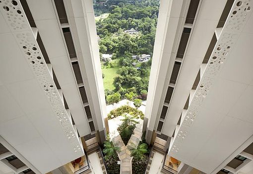 SkyVille@Dawson - это новаторский проект государственного жилищного строительства по заказу Департамента городского развития Сингапура. Три кита проекта – общность, разнообразие и устойчивость. Каждая из трех башен комплекса состоит из четырех 80-квартирных «поселений», выстроенных одно над другим, у каждого есть своя открытая терраса и сад. Таким образом, получается  12 деревень и 960 квартир. Дизайн апартаментов отличается гибкостью и разнообразием, планировка интерьеров свободная.