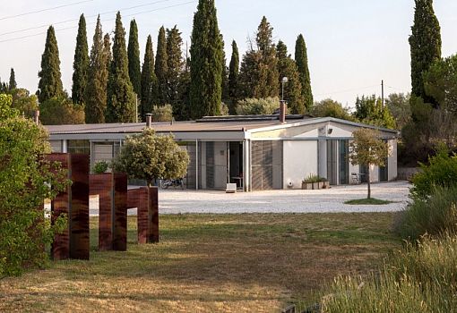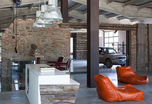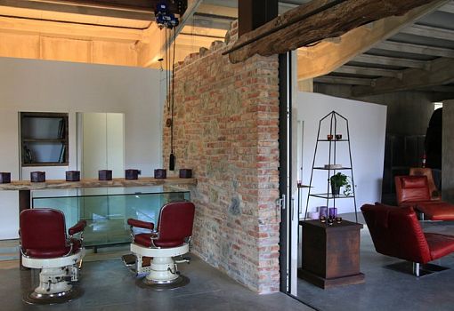 Кажется, что основой концепции дизайна квартиры Art Hangar стали оригинально обыгранные материалы. Изначально работу над проектом начали австралийский скульптор Рейнгольд Трасл и его жена Астрид (Reinhold и Astrid Traxl). Необычно выглядит обветшалая кирпичная стена и терраса, сделанная из транспортного контейнера. Объединяющим элементом декора можно назвать вставки из натуральной древесиной. При этом основное внимание уделено инсоляции и визуальному единству с природой Тосканы (Италия), что стало возможным благодаря большой площади остекления. Современный лофт предоставляет владельцам250 кв. м для беззаботной жизни.