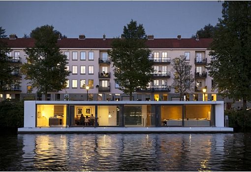 Архитекторы бюро +31ARCHITECTS создали необычную виллу для заказчиков в Амстердаме (Нидерланды). Дом расположен на реке Амстел и является полноценным плавучим сооружением. Проект Watervilla демонстрирует минималистскую стилистику, подчеркнутую открытостью пространств. Большая площадь остекления увеличивает интенсивность естественного освещения интерьера.