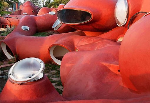 Сложно найти более причудливый дом, чем Bubble House, спроектированный в 70-м году архитектором Антти Ловагом для кутюрье Пьера Кардена. В этом году здание, представляющее собой архитектурную отсылку к биомимикрии и органическим формам, было полностью восстановлено. Архитекторы Studio Odile Decq частично обновили стальной каркас с бетонным наполнением, а главное – придали первоначальный вид психоделическим интерьерам дома. Теперь это музей, открытый для всех желающих.