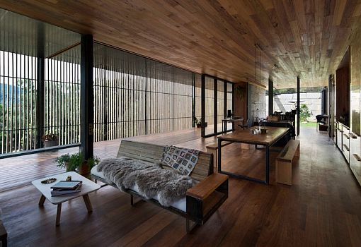 Дом в Австралии от студии Archier для молодой семьи из трех человек, расположенный на вершине холма, стал своего рода экспериментом по вторичному использованию блочного бетона. Для создания семейного гнездышка было использовано 270 «вторичных» блоков, которые пошли на выкладку стен. Также использовались и другие материалы, в частности, дерево. Благодаря открытой планировке интерьеров внутреннее и внешнее пространства плавно перетекают друг в друга. Особняк погружен в окружающую природу, солнечный свет, но при желании он может быть закрыт от ветра и жары. Его форма позволяет ветрам долины беспрепятственно проникать внутрь. Так осуществляется естественная вентиляция помещений.