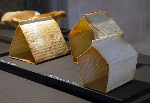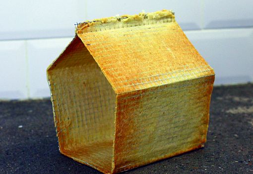 PAIN | BRUT – коллекция предметов, выпеченных  из армированного хлеба дизайнерами  A/R Studio. Придуманный ими  лоу-тек (а заодно и лоу-кост) материал представляет собой пласты теста, усиленные металлической сеткой, которая не только повышает прочность предмета, но и помогает придать ему желаемую форму. Авторы считают, что одноразовость и недолговечность PAIN | BRUT  – абсолютно в духе времени, требующего от вещей простоты, минималистской эстетики и простоты утилизации. Изделия из армированного теста можно использовать в качестве контейнеров, предметов сервировки и для декора интерьера. Самые символические  предметы коллекции – гнезда и домики, задуманные как подспорье для диких птиц. В трудные времена эта выпечка послужит  им одновременно и домом, и источником пищи. Когда гнездо будет полностью съедено или пострадает от погодных условий, его можно изготовить снова и снова  на той же самой сетчатой основе.