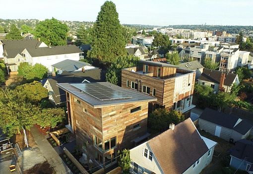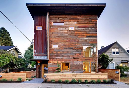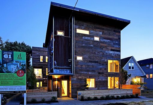 Одним из требований к проекту жилого дома в Вашингтоне (США) стало получение сертификата так называемой «Изумрудной звезды» (Emerald Star) в области экологичности. По всей видимости, с этой целью архитекторы Dwell Development LLC использовали природные материалы для строительства (около 90%). В стилистическом отношении постройка представляет собой смесь минимализма с «кантри».  В результате получилось неординарное жилище площадью в 674,5 кв. м, концепция которого предусматривает снижение потребления воды на 70% и электричества – на 78%.