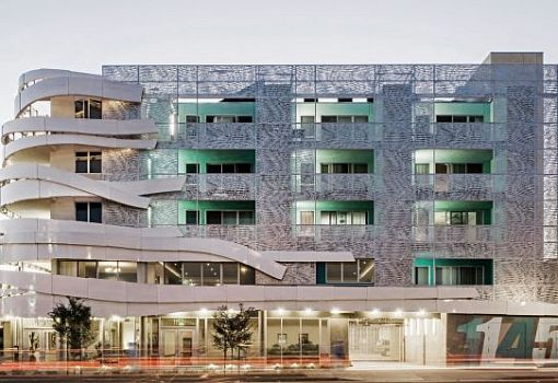 Бюро Patrick Tighe Architecture и John V. Mutlow Architects в Калифорнии (США) в рамках программы La Brea Affordable Housing реализовали проект бюджетного многоквартирного дома для людей, страдающих серьезными заболеваниями. Его отличительная деталь – ограждающая конструкция на одном из фасадов, которая напоминает «расползающуюся» бинтовую повязку в тот момент, когда ее снимают.