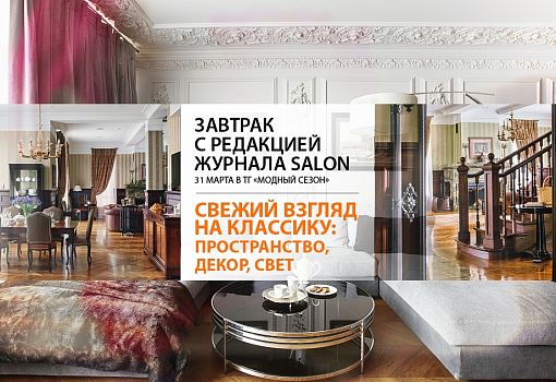 Приглашённым спикером на этот раз будет архитектор Жанна Кочурова. Она раскроет некоторые профессиональные секреты: с помощью каких приёмов в декорировании можно освежить классический дизайн. В привычной для себя роли ведущей Завтрака выступит главный редактор SALON-interior Ольга Короткова.