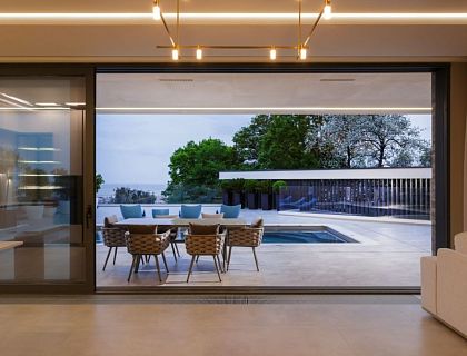 На данном примере можно наглядно убедиться, что 220 метров общей площади дома на 4,7 сотках земли может хватить на комфортное проживание семьи из 5 человек. Дом состоит из 2 этажей и чердачного полуэтажа. Террасирование участка позволило зонировать участок в 2 уровня. Нижний уровень служит парковкой, входной группой и зоной благоустройства. Верхний уровень полностью предоставлен приватной видовой зоной отдыха.