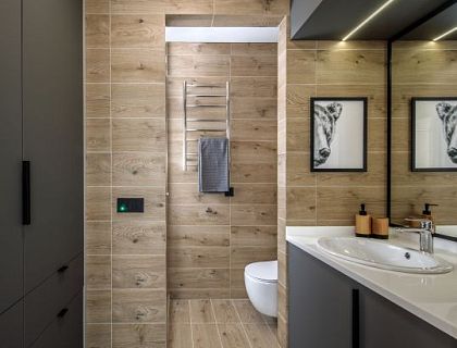 Загородный дом в подмосковном в КП Гринфилд Заказчик приобрел готовый построенный дом для своих детей. В этом дворе была еще одна постройка для сотрудников с гаражом , но его переделали в гостевой дом для друзей и родственников. В доме была пристройка для бассейна, но из нее заказчик сделал банкетный зал, поскольку любит принимать у себя родных и друзей в больших количествах.