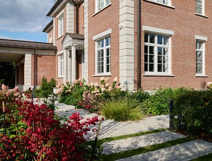 Загородный дом в Английском стиле на большую семью. Эксклюзивный камень- гранит Копакобана (Copacabana), ручной работы тераццо на полу и красный орех в отделке мебели создают вместе неповторимый стиль.